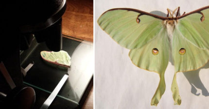 他用顯微鏡放大看這片看似單色的月形天蠶蛾翅膀,一放大後就被看到的畫面嚇到了!