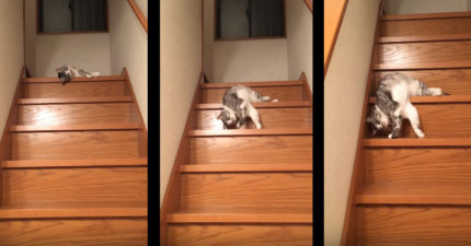 主人在二樓不小心打翻了一碗「貓咪濃湯」,結果湯汁流下來的畫面讓我笑噴了!
