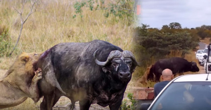 水牛被「數頭獅子攻擊」就快要不行 牠下一秒逼近「人類的車輪胎」機智舉動網全看傻!