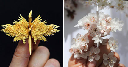 絕對不重複!紙雕藝術家挑戰「折1000天紙鶴」 乾燥花紙鶴完全是從仙境來的天使~