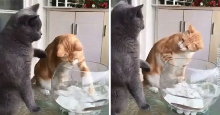 貪玩喵對魚動手動腳 好友看不下去「出拳教訓」:誰准你碰牠們!