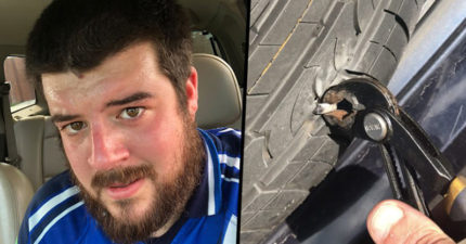 影/高速公路上听见巨响 足球男发现轮胎被「小扳手」插出大洞
