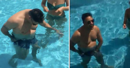 影/肉肉哥穿兄弟送的泳裤超开心 泡水一半…下面竟然「化掉」了?