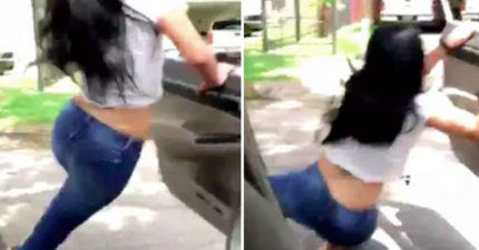 影/網路瘋傳「從移動中車子跳出」挑戰 正妹一踏出去就後悔了