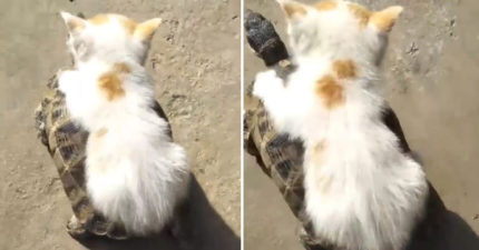 朕的新座騎!奶油小貓逛沙灘 趴小陸龜「快啊!朕餓了~」