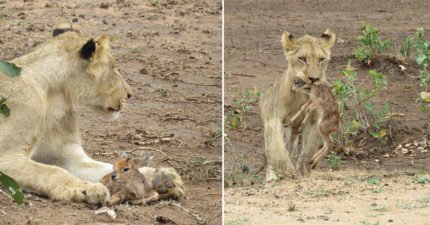 打破食物鏈極限!獅媽媽叼小羊以為是晚餐 下秒溫馨舔毛…旅客:我看到了什麼