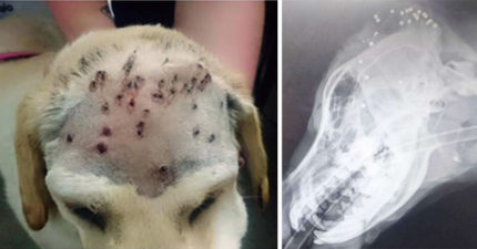 1歲拉拉遭霰彈槍近距離攻擊,毛剃掉「30顆子彈佈滿額頭」!主人心疼:「他心靈受創…」