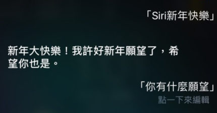 問Siri新年新希望得到「超溫馨回應」 網友看完「搶著跟Siri討拍」