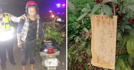 洛神花被偷光光!農夫「立告示牌求饒」員警霸氣留言回應,他天亮看見感動直奔派出所道謝!