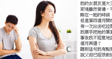 男友賺不少但仍要AA制,女友反嗆「都配合%%還計較」4個月後變本加厲露狐狸尾巴!網友:是妓女與恩客關係?