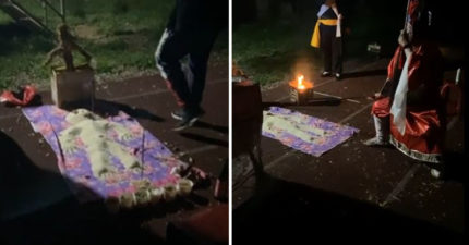 新竹校園「送肉粽」完整畫面曝!「白色米人」躺操場跑道…鍾馗送煞