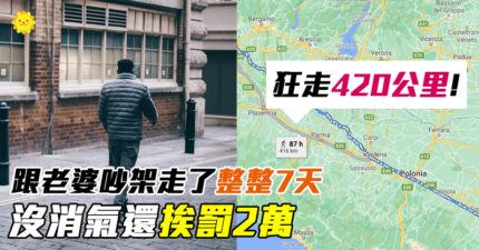 跟老婆吵架想散心!出門「狂走420公里」沒消氣 還挨罰2萬
