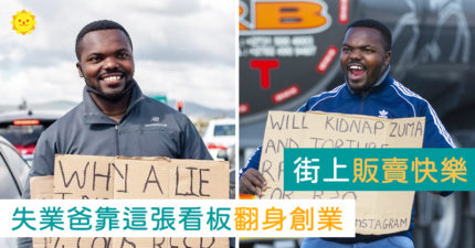 失業也不放棄!樂觀爸拿「看板」感動路人 靠賣微笑「爽賺13萬」