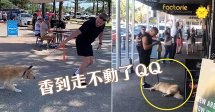 香到走不動惹!阿金聞到烤肉味「原地裝死」主人氣瘋:項圈已擠爆