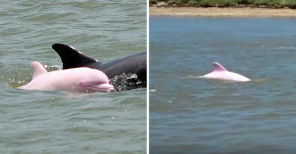 上帝的美麗錯誤?超罕見「夢幻粉海豚」躍出海面!