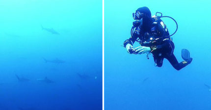 潛水見整面「鯊魚牆」200隻風暴式圍繞!她淡定:還是水母恐怖