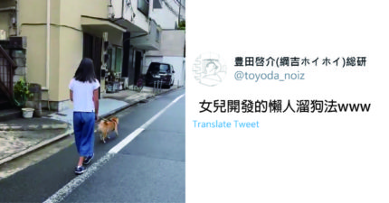 女童發明「懶人遛狗法」超有效率 「完全不動」也能被狗遛著走!