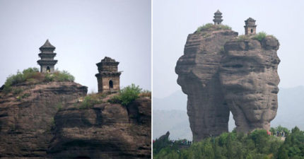 蓋在巨石岩柱上的神祕寺廟「近代無人上去過」 乾隆曾搭雲梯登塔…晚上竟夢見白髮老人