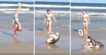 比基尼妹子沙灘翻跟斗 月月目睹現學現賣:這麼easy我也會啊!