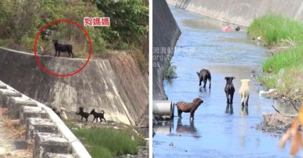 肚子餓哭哭!4小狗受困河道 高雄狗媽媽每天跳3公尺來回餵養
