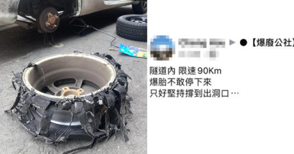 進隧道爆胎不敢停「只好硬撐到出口」車主嚇傻:只剩流蘇