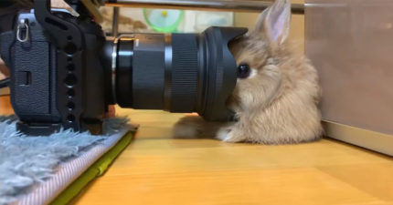 主人太愛拍!萌兔超不怕鏡頭「半張臉被吃掉」也不為所動