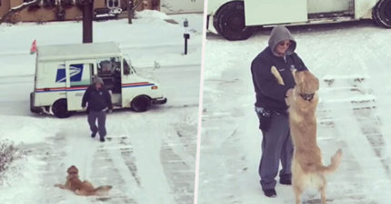超萌黃金每天苦等「郵差好朋友」討大抱抱 溫暖治癒剛失去愛犬的他!
