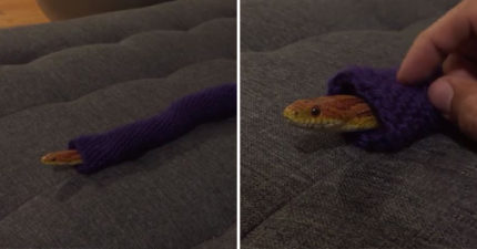 寒流來襲!寵物小蛇穿上「量身訂製」紫色毛衣 牠露出「滿意小眼神」超可愛