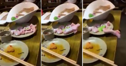 影/吃火鍋驚見去皮田雞「揮臂逃跑」!網友嚇到想吐:太新鮮了