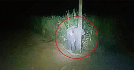 偷吃甘蔗被抓包!小象「躲電線杆後面」以為不會被發現