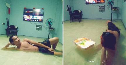 颱風淹水「樂觀哥當Villa」繼續住 照片曝光細節嚇壞人