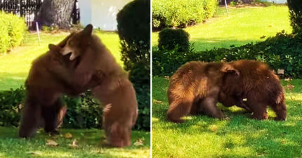 影/熊寶寶在庭院偷玩摔角 「屁拳狂嚕」連硬漢警察也融化