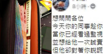 他給偷錢同事機會 對方「惡劣反應」讓人傻眼:平常都請他吃飯