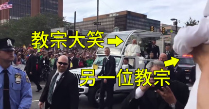 當教宗方濟各看到路邊「被抱起的另一位教宗」時,他忍不住大笑給予溫暖祝福!