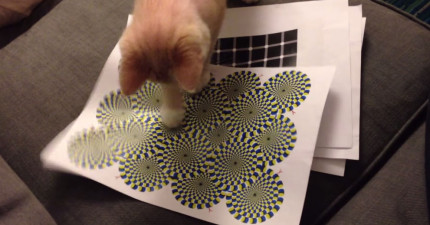 他把「錯視圖」印出給他家貓咪,貓咪被騙慘狂打貓拳的可愛模樣太犯規啦!