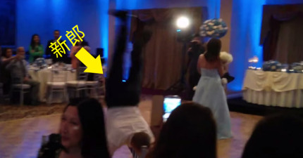 新郎新娘在婚宴一起跳舞進場,不料新郎一技華麗特技瞬間把新娘給KO了…