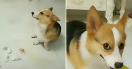 毛孩把家弄亂媽唸「給個交代」 他轉身叼了奉上:不客氣
