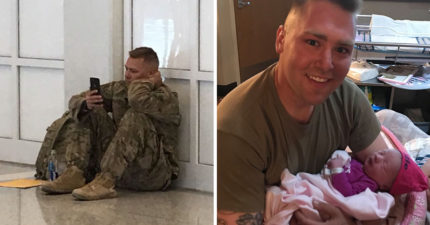 大兵機場「連線看老婆產女」!哭聲一從電話傳出 他就馬上失控了