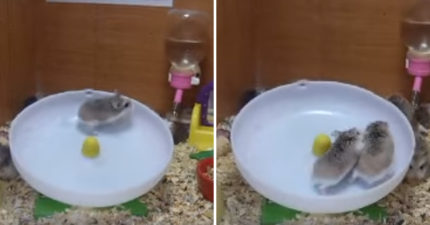 2隻倉鼠滾輪上同步不同調 下秒發生「最傻萌事件」會讓你笑到斷氣!