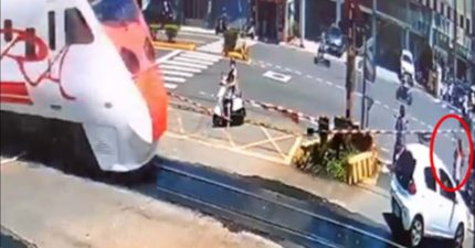 三寶駕駛停鐵軌上聊天!3秒後「慘遭火車強吻」網:誰給她駕照的?