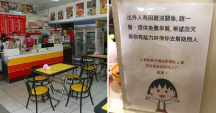 早餐店公告「推出免費A餐」:有困難就來吃!細看「底下多一行小字」暖哭網友
