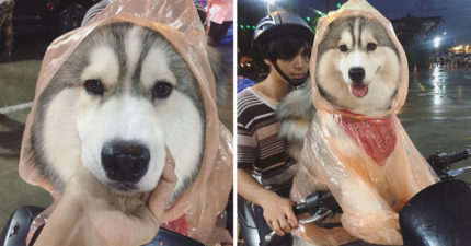 超可愛哈士奇穿雨衣和主人一起兜風 「幼稚園寶寶笑容」瞬間讓天氣想放晴!