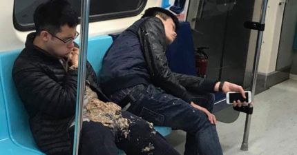 2醉男北捷上輪流嘔吐在對方身上,成為「台灣最噁風景」。