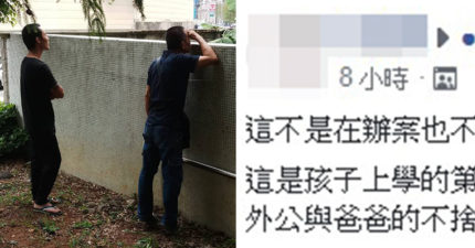 寶貝第一天上學「爸爸外公不捨」 牆外探頭探腦媽媽笑:這不是擄小孩!