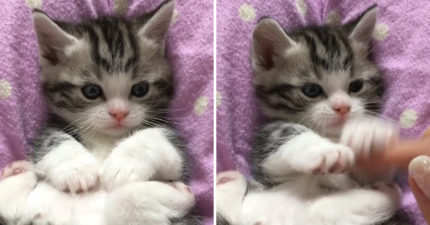 主人狂戳小肉球玩不膩 小奶貓氣pupu「開大絕」:受夠妳囉~