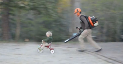 爸爸發明「吹葉機飆三輪車」遊戲,最後一幕媽媽的心臟都噴出來了!