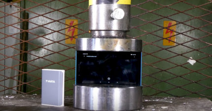 液壓機一壓下行動電源,讓人考慮該禁止帶上飛機!