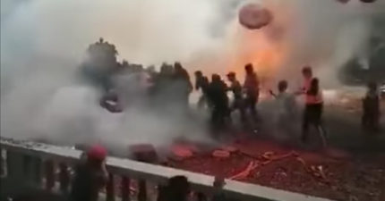 結婚變打仗!中國荒謬鬧婚「親友鞭炮丟新人」炸到轎子都消失了