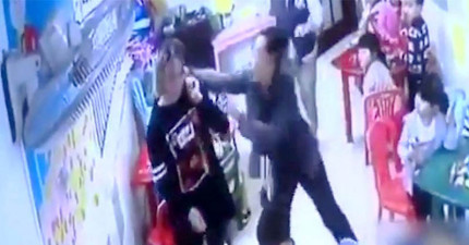 這名「可惡的女老師」一直亂打小孩被小孩的阿嬤看到,接著阿嬤就變成超級賽亞人了!