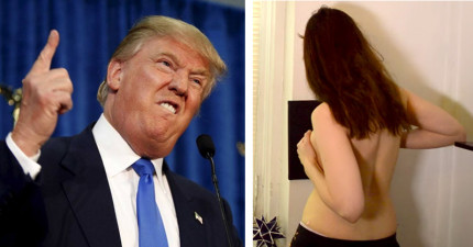 這名女生要挑戰畫出美國總統候選人川普的畫像,沒想到開始畫時她竟然脫下上衣然後掏出來…